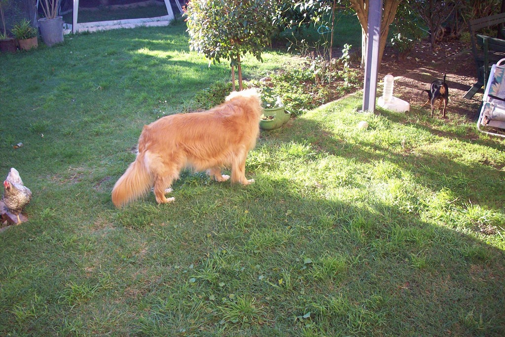 Above: After several sweeps of the back and front yards we were about to give up when ET noticed something in this clump of lilies – Ruby!