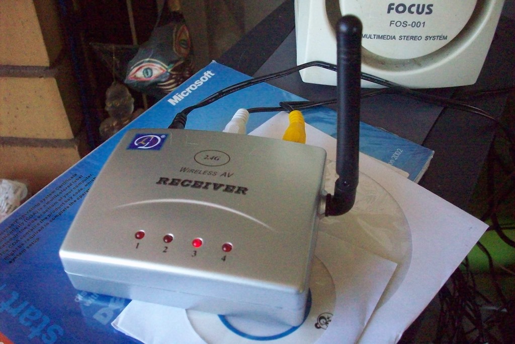 This is the wireless camera, the cable from the back has video, audio and 12V RCA connectors.