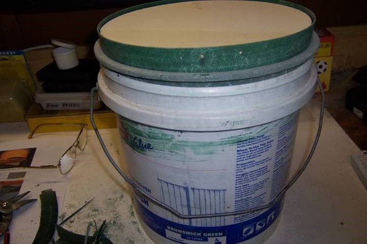 Bucket of “dirty” sawdust (mixed with rubbish and carpet fluff).