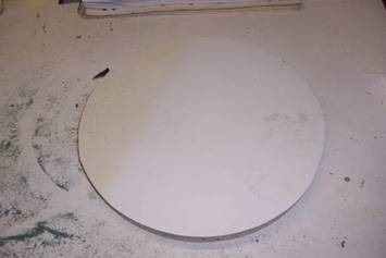 The MDF disc is too big and hits the table column so it’s not possible to drill the centre hole.