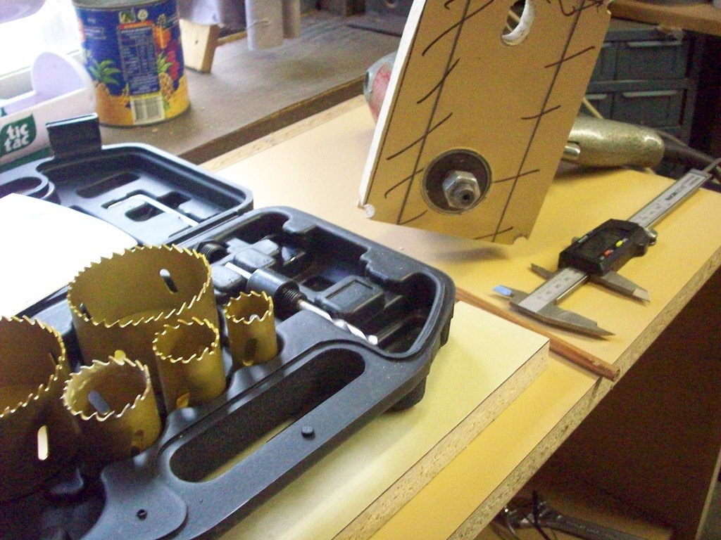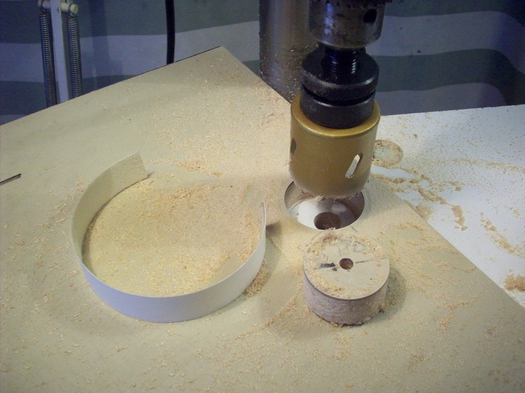 The collar diameter is 42mm and the nearest hole saw is 44mm. Here I’m drilling a test hole, as expected it’s a bit to big so I will need to find something to shim the gap.
