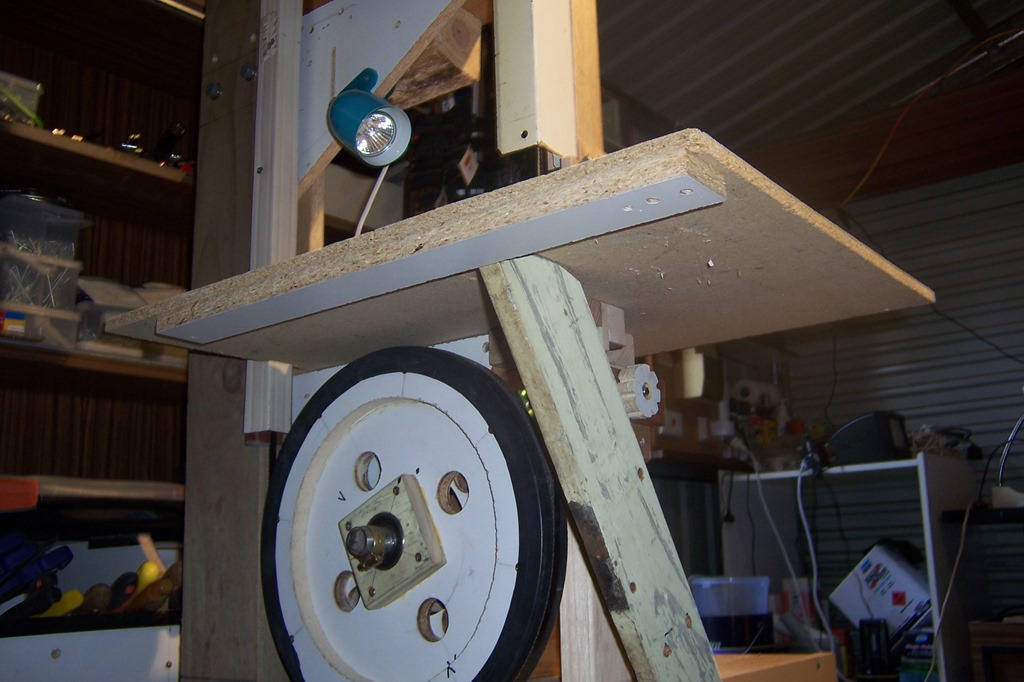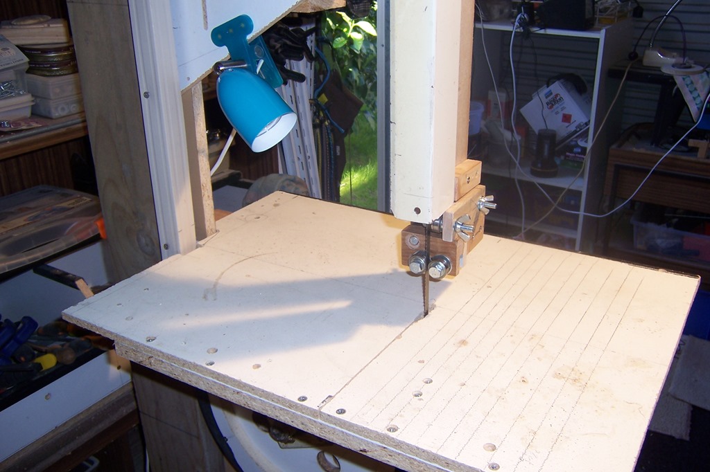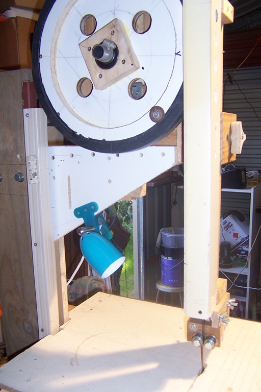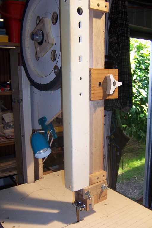 Here you can see the right blade guard that I fashioned from a fluorescent light fitting, it moves up and down in unison with the blade guide arm.