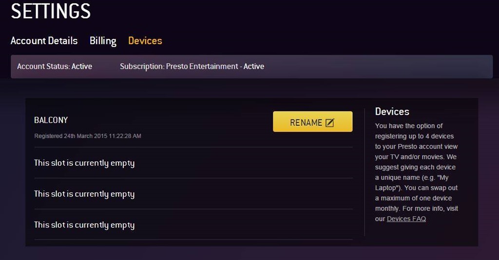 You can register up to 4 devices, just did the Balcony Windows 7 desktop PC which has a HDMI connection to the Soniq 42″ TV. Next device is the Lenovo 10″ tablet.