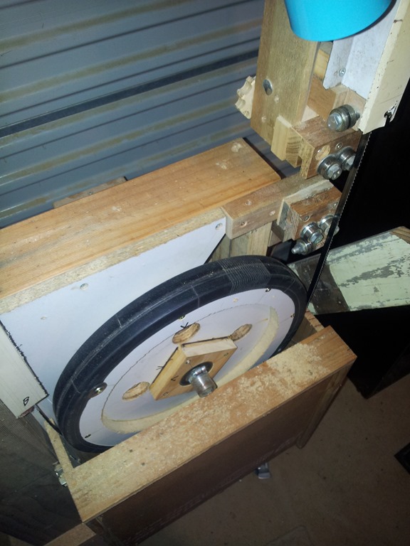 Above: With the old temporary table removed you can see stuff that’s normally out of view; the bottom wheel and lower blade guides.