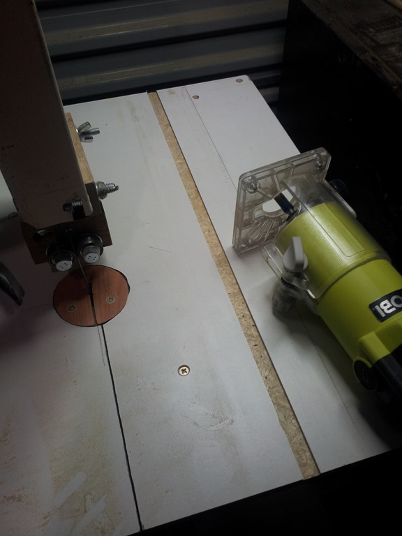 In the previous workshop post I routed a track down the table for cross cutting, here I’ve done another track across the table for rip cuts.