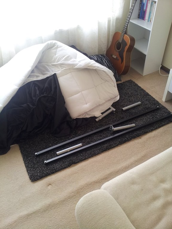 Decided to dismantle the double bed in the 3rd bedroom and store that in the rumpus room to make room which works out OK as ET is turning this bedroom into a library/art room.