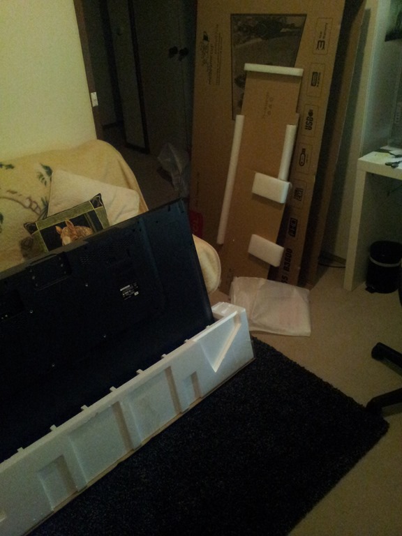 Lugged the beast up the stairs by myself into one of the end bedrooms to unpack and setup. DO NOT do as I do, this is a two person job! However…if you’ve been doing TV stuff from the sixties then you can exempt yourself – like I have.