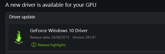Checking today’s weather and screen went blank, then spinning circle followed by pop-up that GPU driver failed to start. Win10 is using generic – check for updates. Ran the Nvidia updater which offered to install the latest driver which is the same version as the one installed – that was replaced with a generic by Windows update !!!
