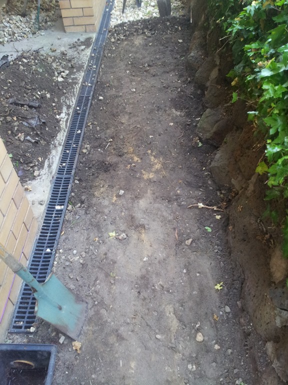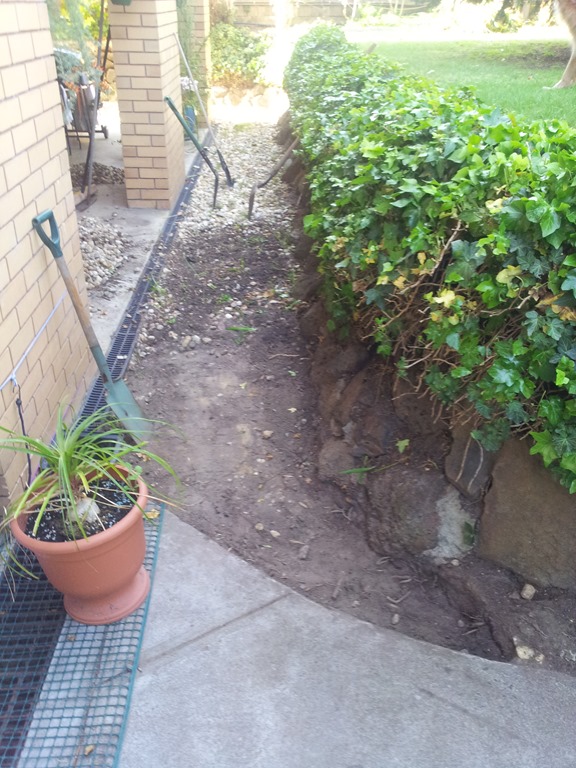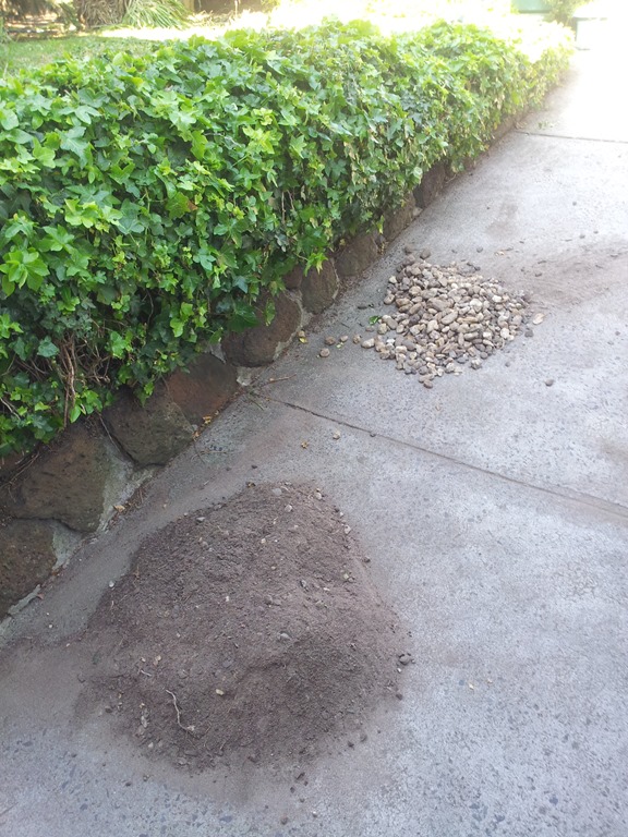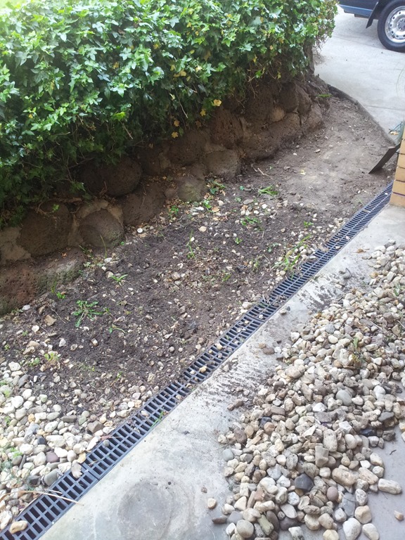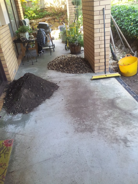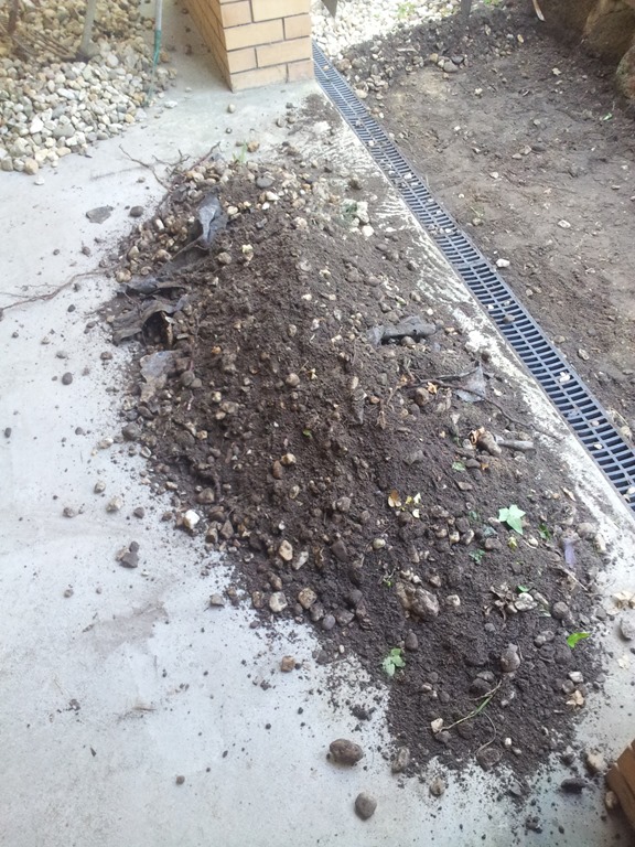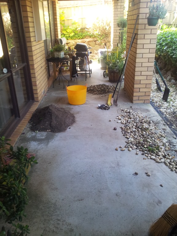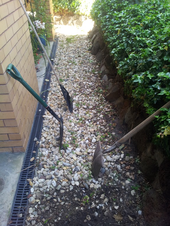 Weather wise a better day today so back outside to continue digging out and cleaning pebbles, this time along the front porch – a long run.