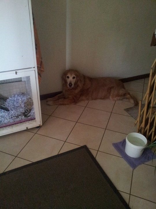 Holly recovering after her vet visit LOL. This time of year her favorite spot is at the bottom of the stairs where it’s always cooler.
