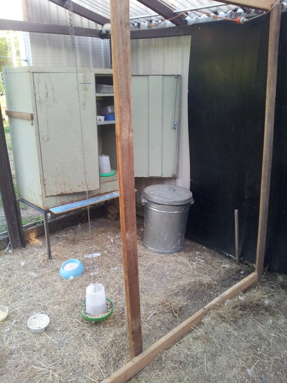 The chook box is done so that’s accommodation out of the way, now we can move onto putting up some framing with wire mesh so they have their own area.
