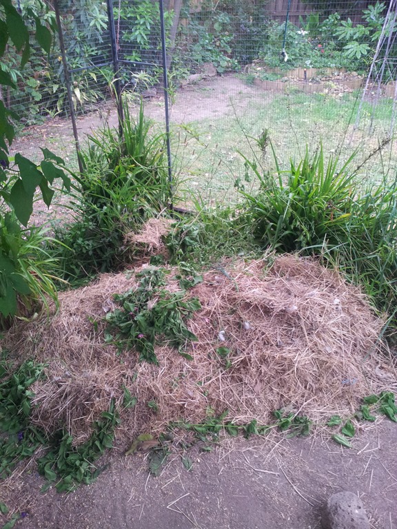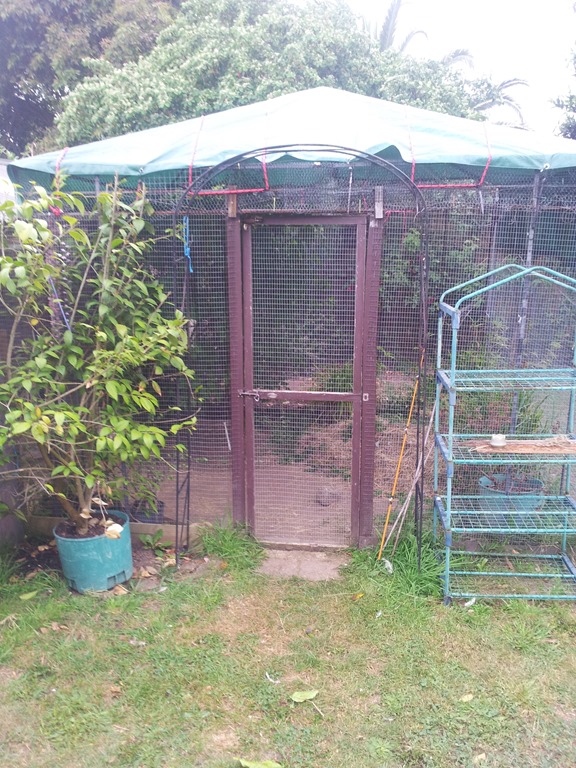 The main chook run has a annex which is one of our previous gazebo’s with wire mesh around the sides, chicken wire above and a tarp over that. I’m going to pull all that down and rebuild the anexe (same as the main run) with star pickets, poles, pine framing with gable and a polycarb roof – and new gate/door.