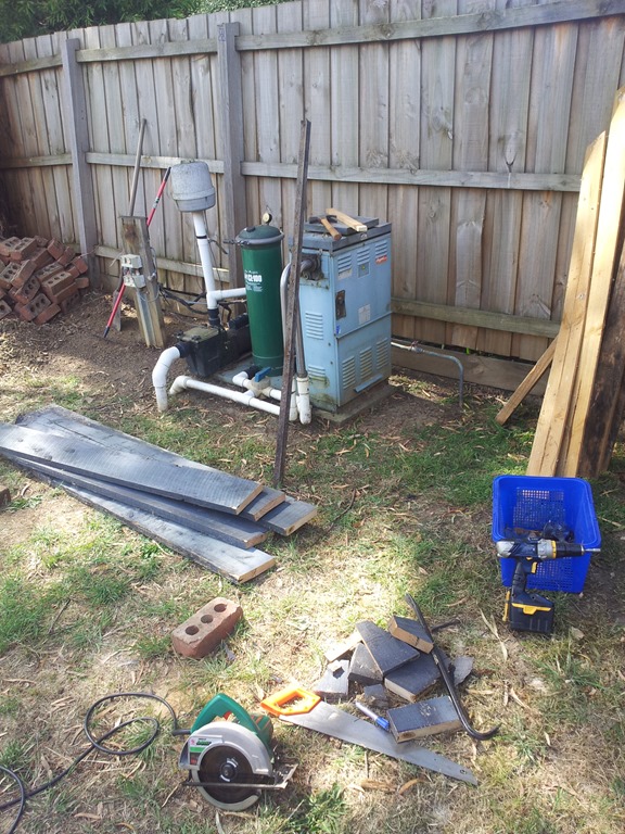 Next job on the list after demolishing the spa pergola is to hide the spa equipment itself to make it more presentable for sale.