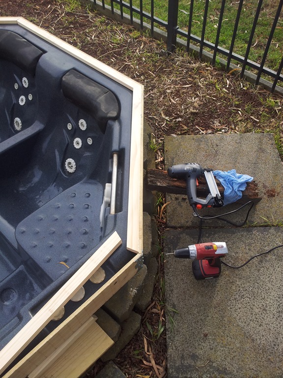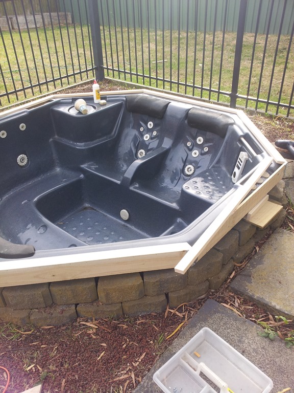 Next job is to clean up the spa area and for me to make a new cover. I’ve already been working in that area to cut down and remove the spa pergola and the main reason for doing that job at that time was to have some more timber available to build the spa box – which was the last job.