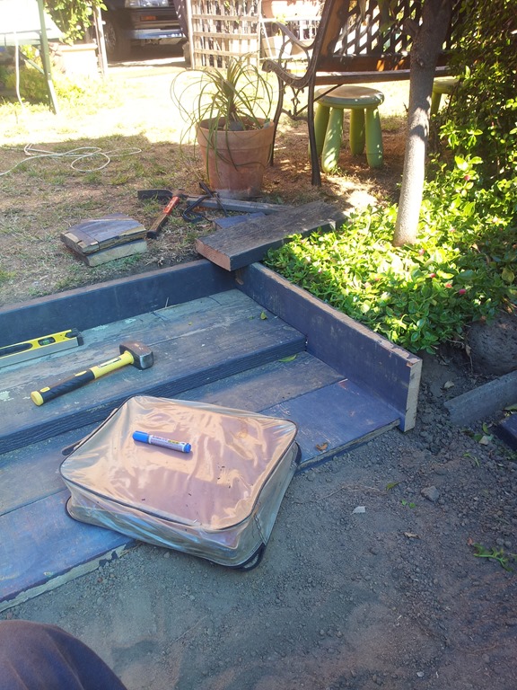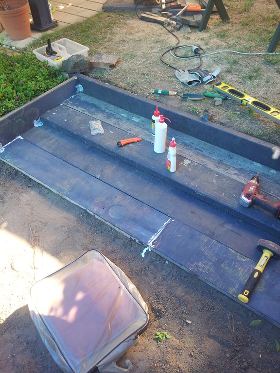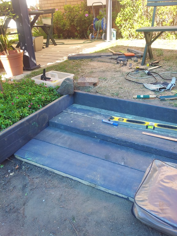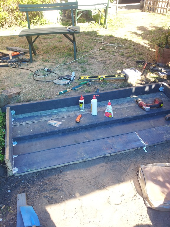 Above: That will do for today – nearly there. Some really hot weather on the way but I should be able to do some painting in the morning before the sun comes over the roof.