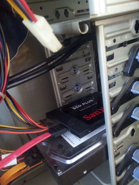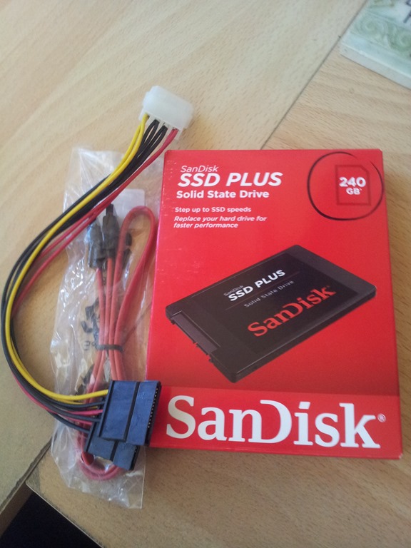 Balcony desktop tower PC upgrade(s) – the CPU swap from E5200 to E7400 which cost $8.60 went well, now it’s time for a SSD so got a Sandisk SSD Plus 240GB from the market today along with SATA and power cables.