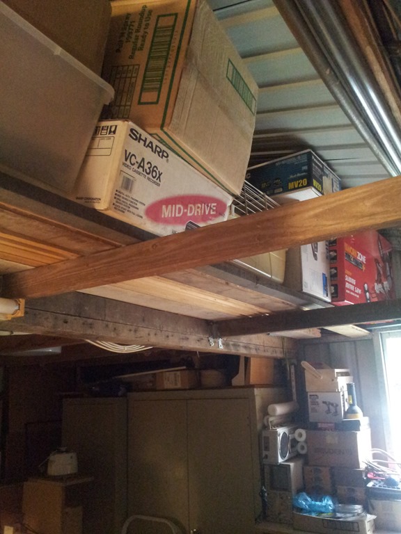 Soon after the garage was built around 2005 I erected a mezzanine floor spanning the back half – it’s full as well.