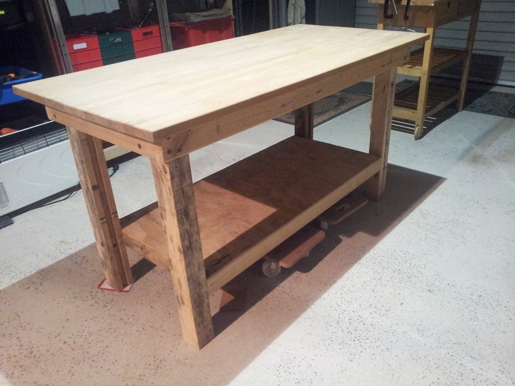 Not able to get out to the workshop till the evening to finish off the main workbench with some leg bracing and a plywood shelf.