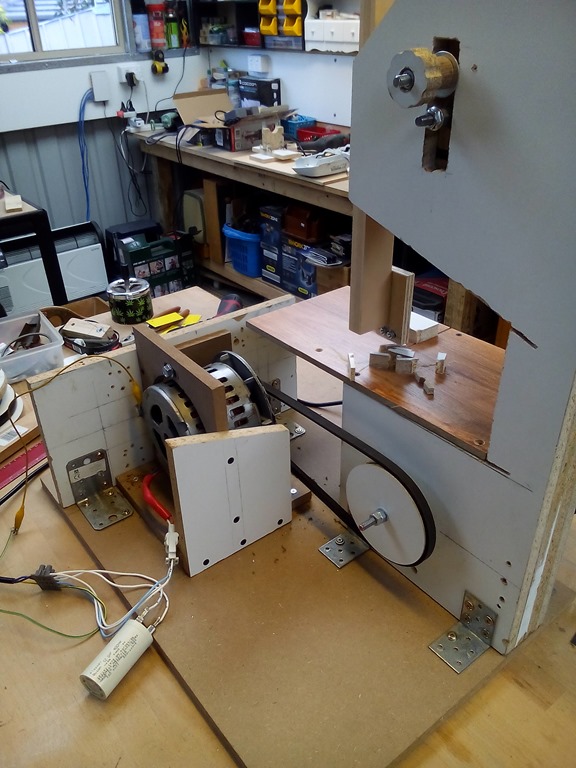 I would prefer to have the motor the other way around and tucked under the table to reduce the footprint but…the motor turns clockwise so I would have to reverse the direction buy swapping the start winding but…not possible as this motor can not be pulled apart – no screws.
