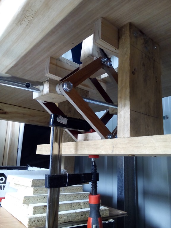 Fiddling around to see if this will operate, I think so…the increased angle of the pivot arms is about where the jack starts to deliver efficient lifting force.
