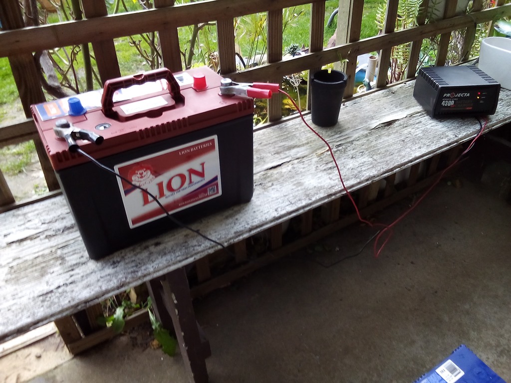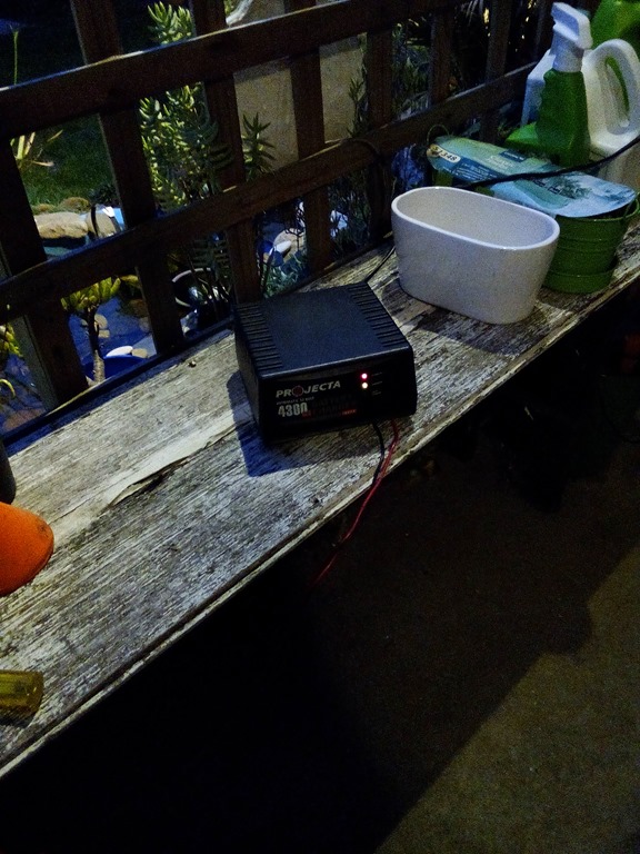 That’s the old battery which isn’t that old, checked the specific gravity of the cells with my hydrometer and a couple are down a bit. Level is down so I topped up with distilled water and will charge again tomorrow – see what happens.