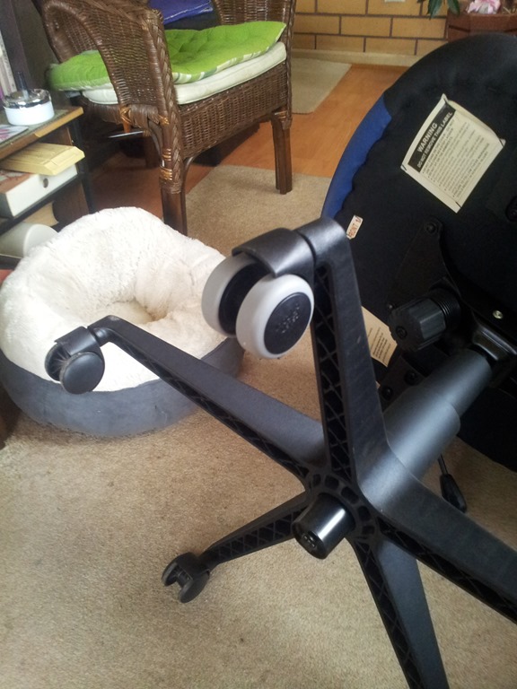 The original castors don’t roll smoothly any more, not helped by being clogged up with dog hair which is to hard to remove. Just get a new set.
