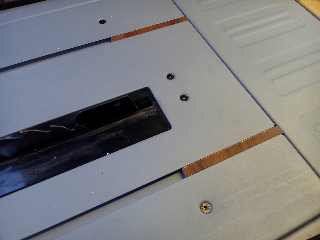 Closer view of the stop strips so the sled can’t be inadvertently pushed right through the saw blade!