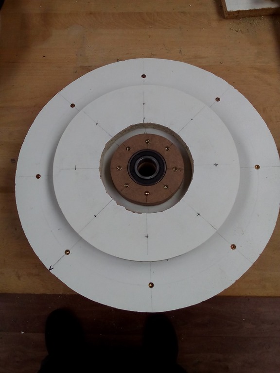 Now we need to centre the ring on the wheel to minimize run-out, then fix with screws.