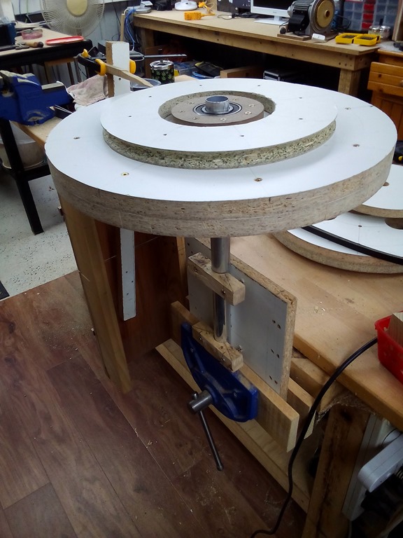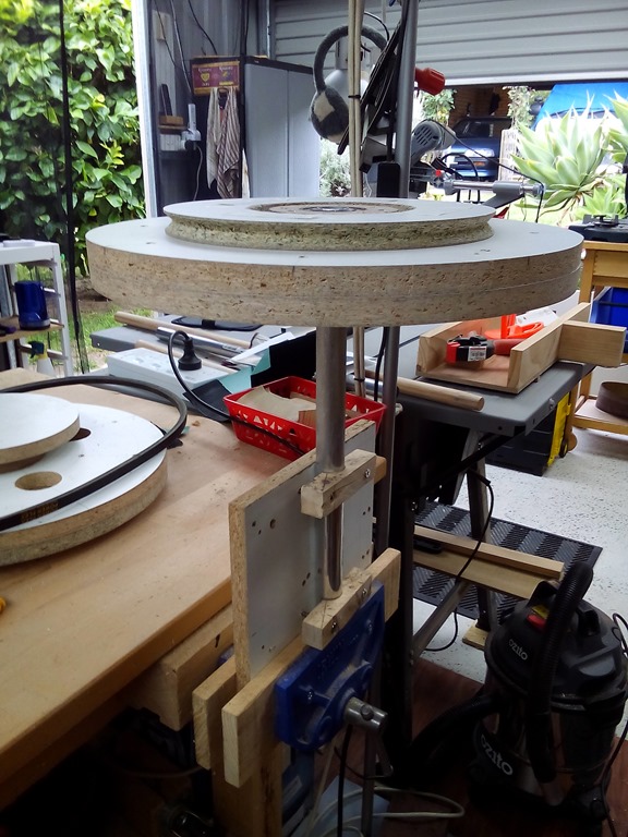 Using the same wheel jig as before but this time vertically.