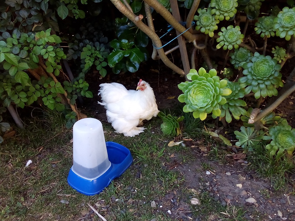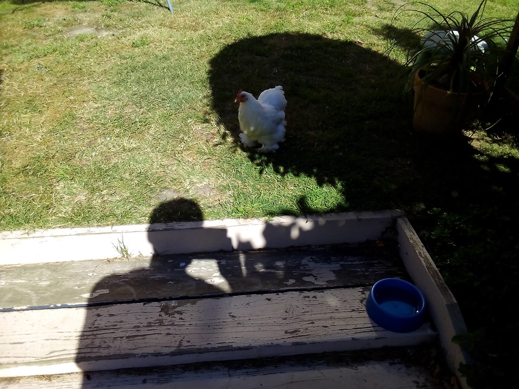 Peaches who is clucky lately, to hot in the shed (coop) so I just bring her out as is into the chook run annex.