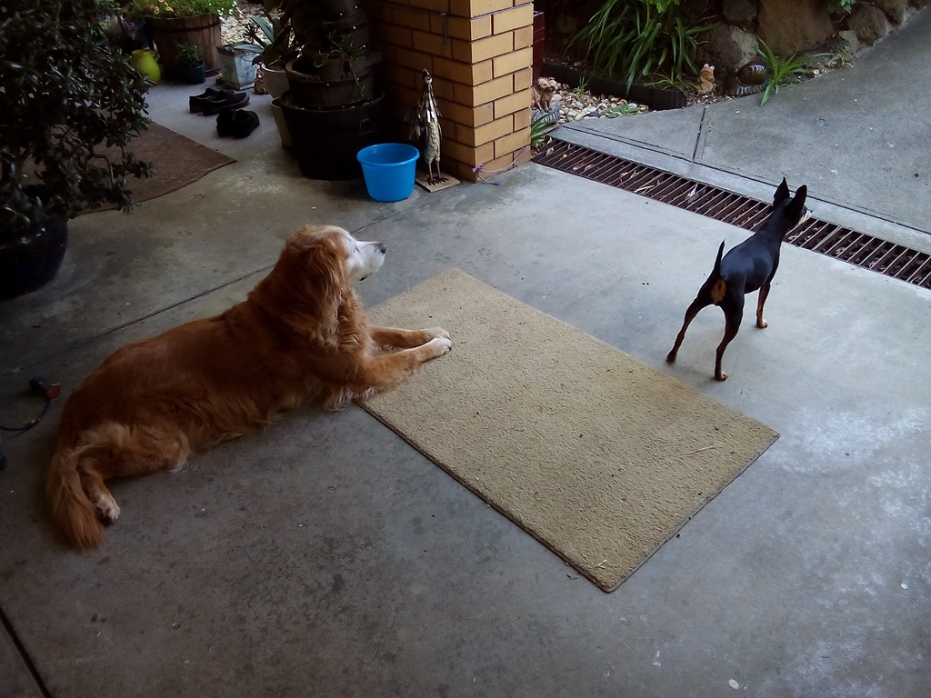 Holly and Pixie…waiting for mum who is away in the country till Friday.