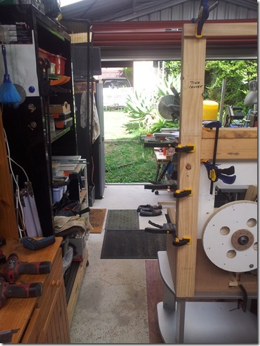 Last time I use 90mm pine for the wheel mount frames, this time is used 70mm which will be fine but it’s a bit wobbly so going to change the bottom for a 90mm wide piece of pine timber. But now it’s time for a break