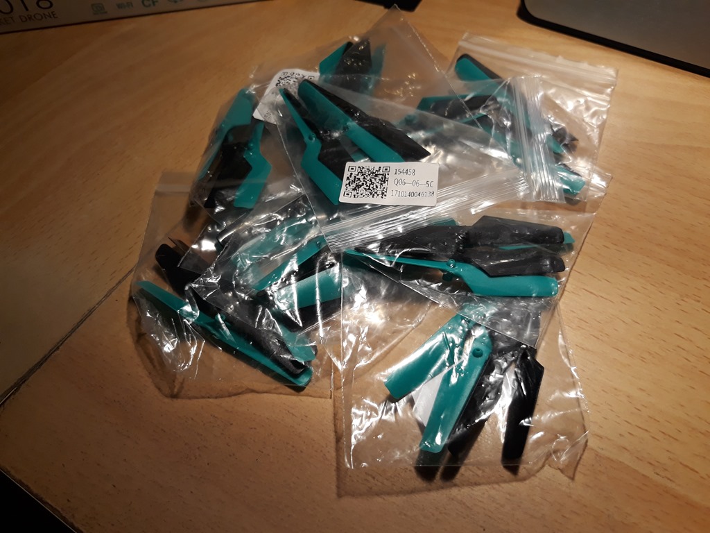 Downed drone update – 70th birthday present which is now over a month ago and still not flown the bloody thing! Been waiting on the eBay spare order – 10 packets (4 per pack)
