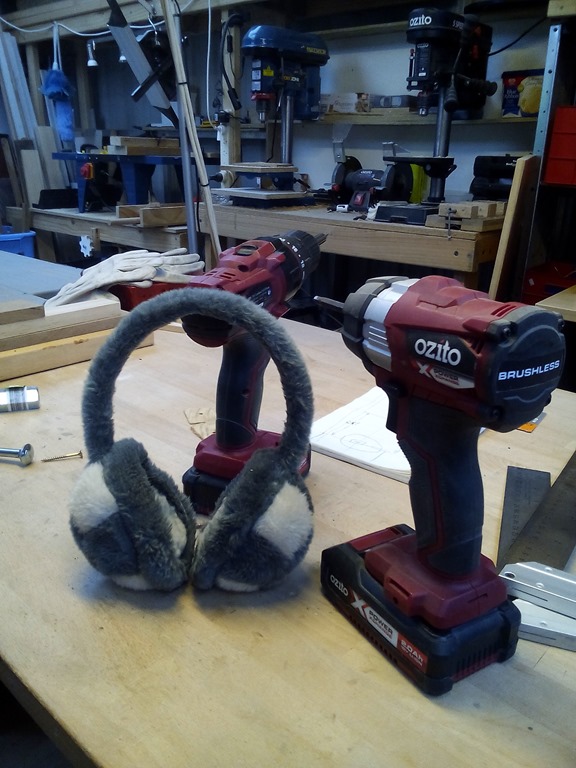I mainly use the Ozito impact driver or wrench for heave duty stuff, like making workbenches and outdoor projects. It’s powerful, aggressive and noisy. That pair of earmuffs is from our 20 years of tending to horses (last 11 years 24x7x365), many of which were very cold and miserable.