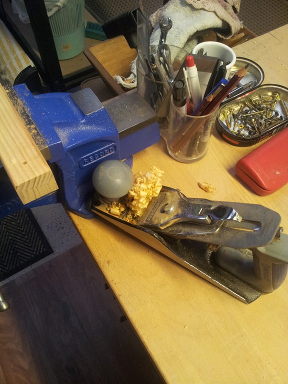 This is the bottom half of the rear shaft mount, planed it down and when I checked by holding it down still way out. We need to be more aggressive…
