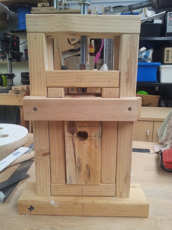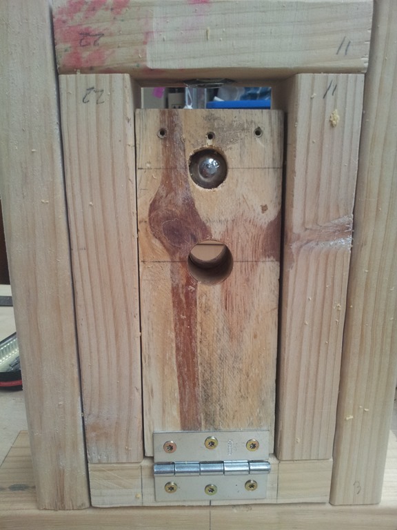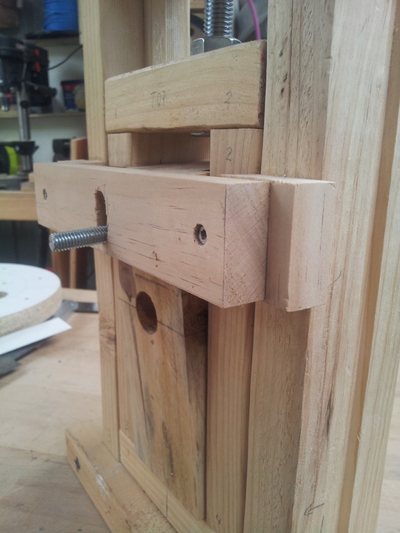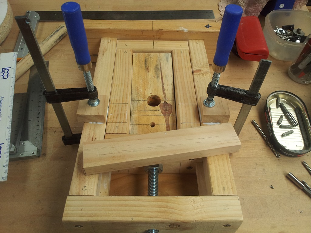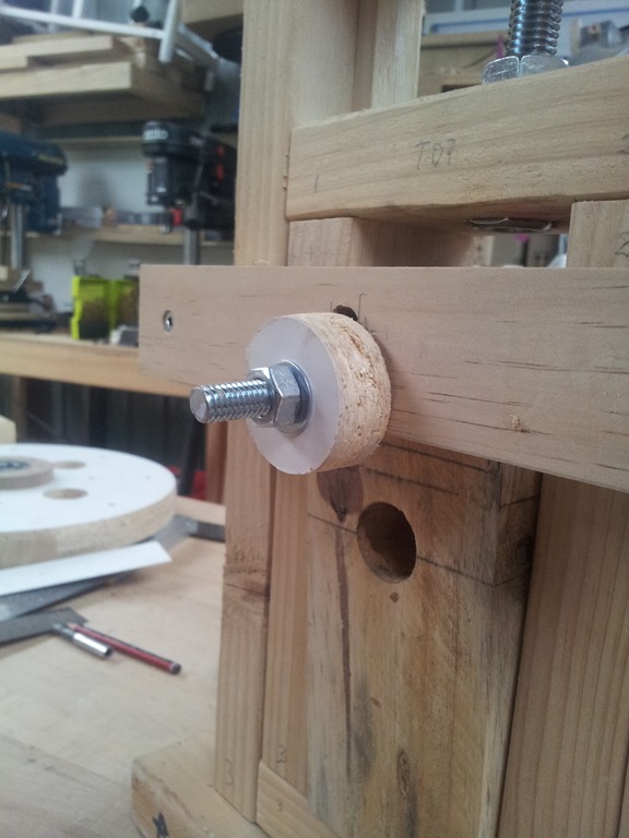 and then screwed on a strip of pine in preparation for the blade tracking coach bolt.