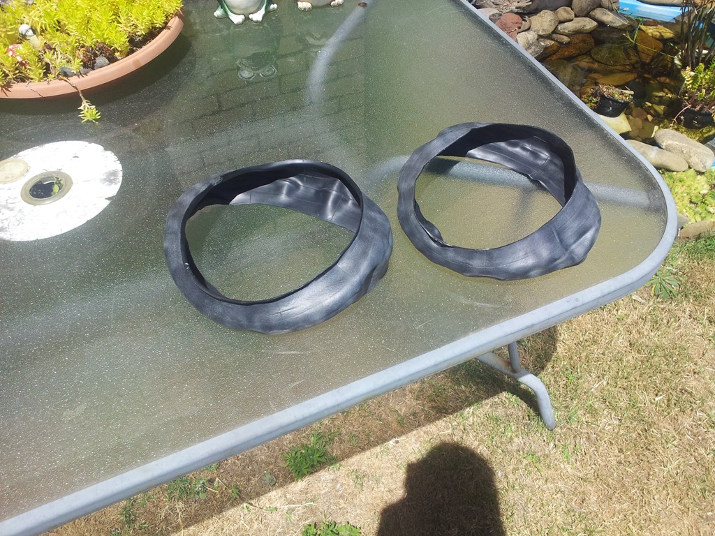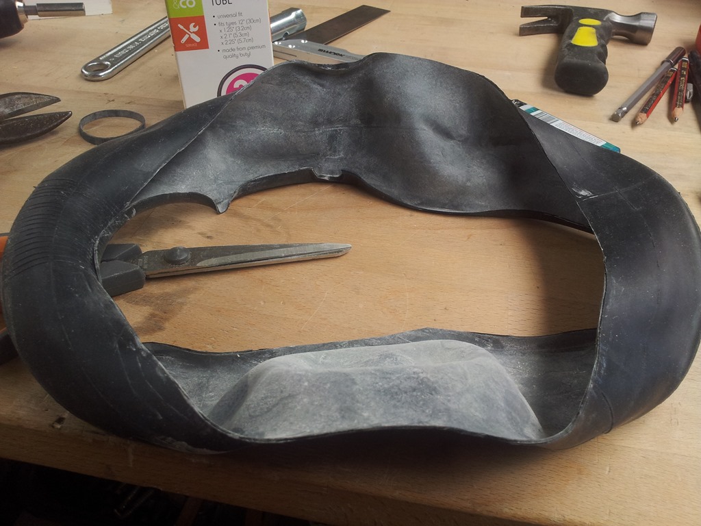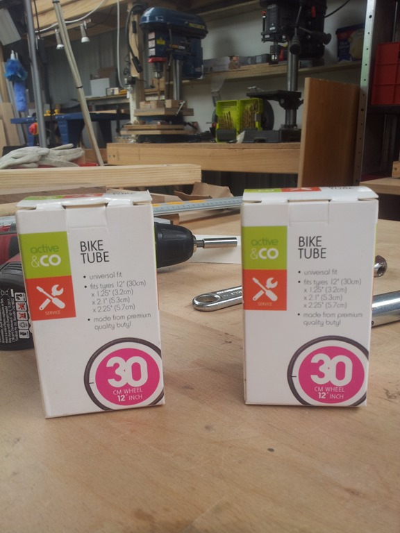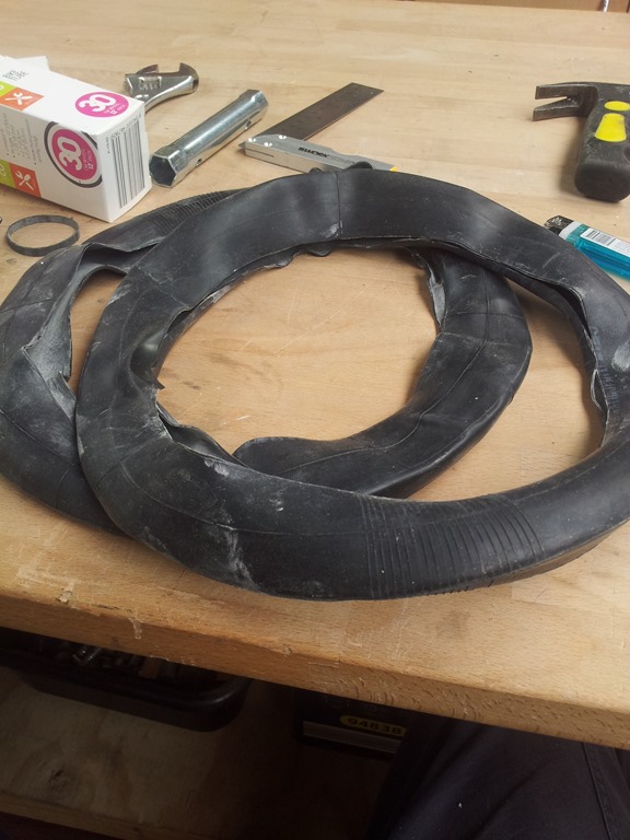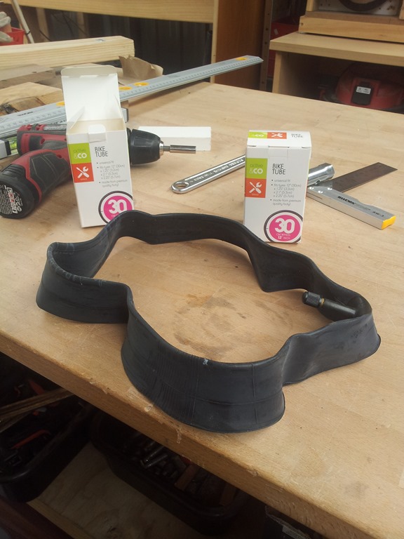 In the tub of ‘parts’ for this build we have two 12” bicycle inner tubes from Kmart – $5 each.