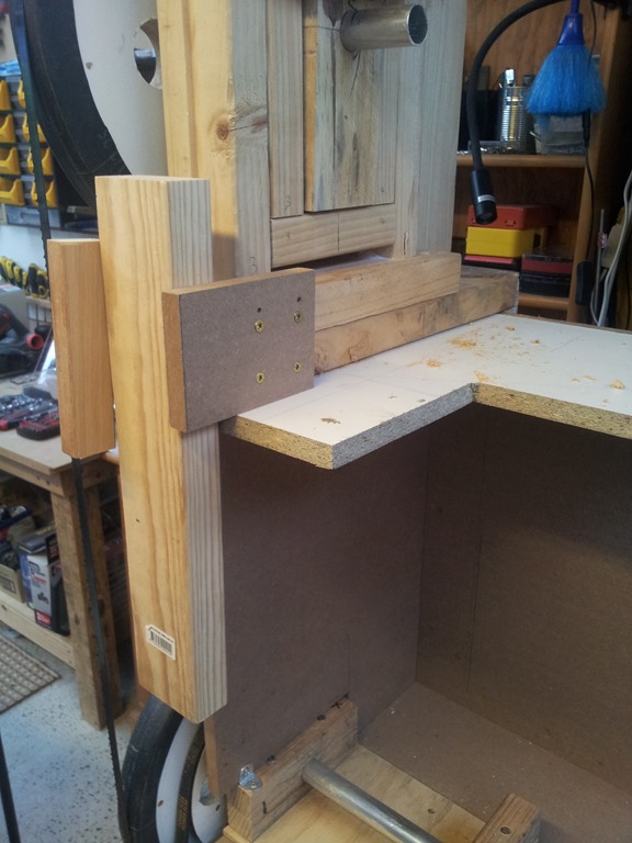 With the horizontal support arm and the upper wheel mount assembly all setup and test run with the blade we can start thinking about the blade guide arm. Measured and cut off flush the end of the support arm.