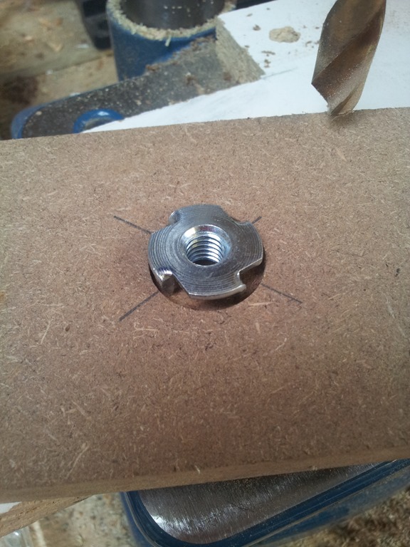 Now drill a hole for the body of the t-nut.