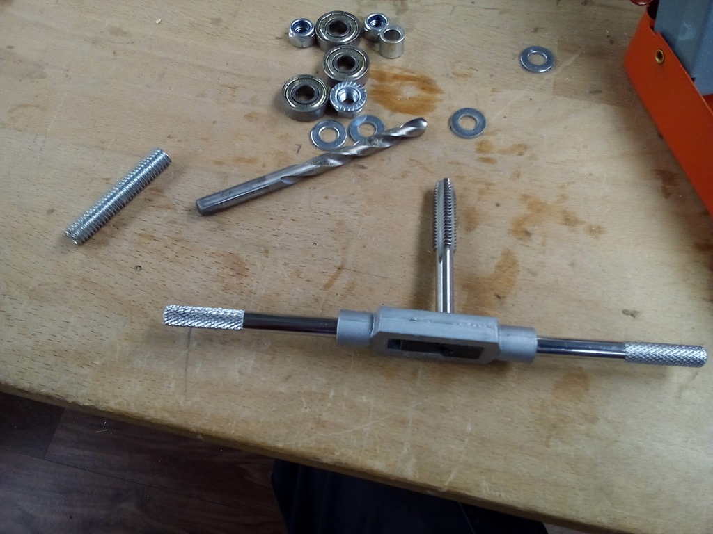 Preparing to drill and tap the guide arm, I have both Metric and Imperial tap & die sets.