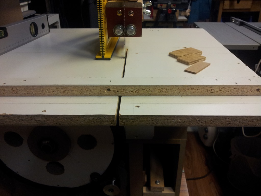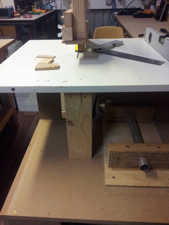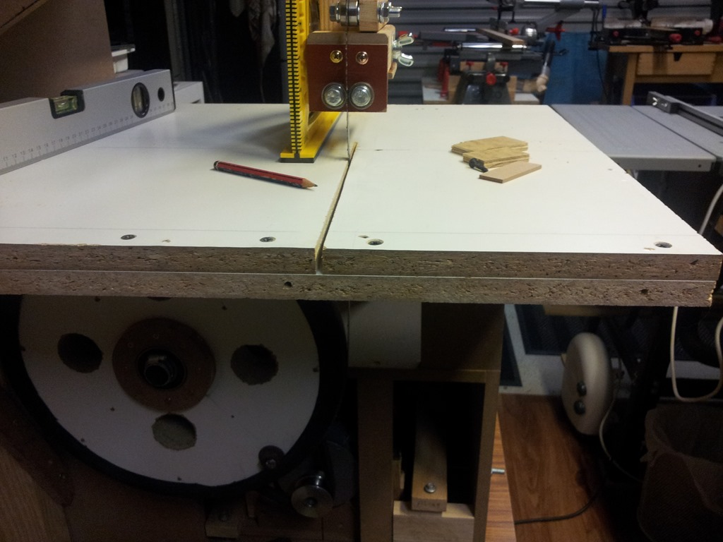 With the upper blade guides completed and before moving on to the lower guides I’ll do some more work on the table. Even though this is a temporary one it still needs to be sturdy and square in all directions with respect to the blade.