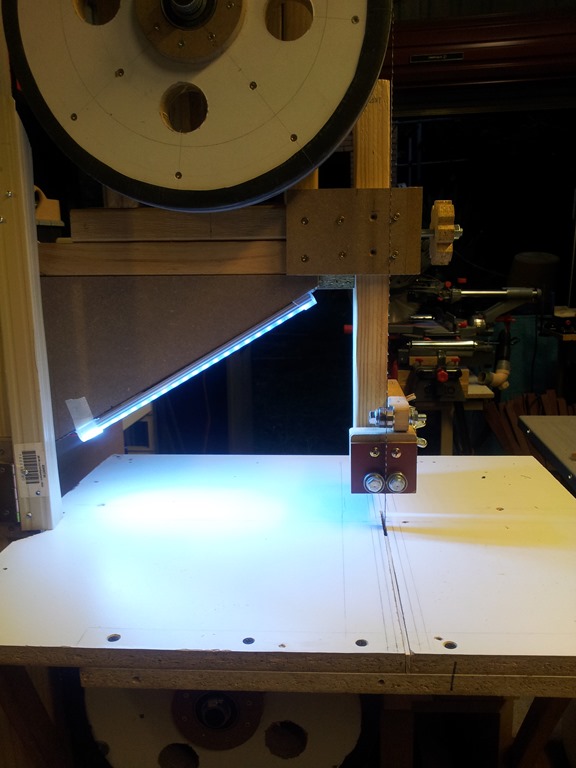 Fixed the LED stick up under the support arm, it lights the cutting area nicely.