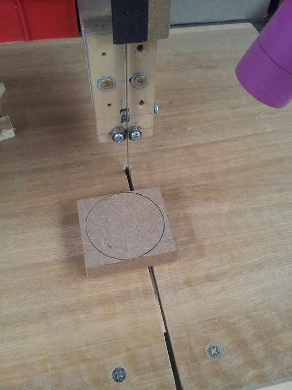 Over to the 8” bandsaw to cut out the base. a usual make the relief cuts around the circumference.
