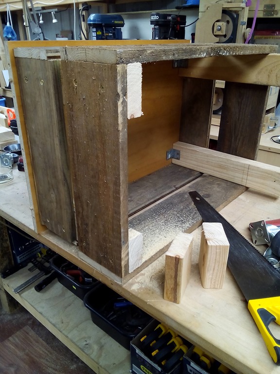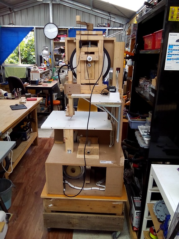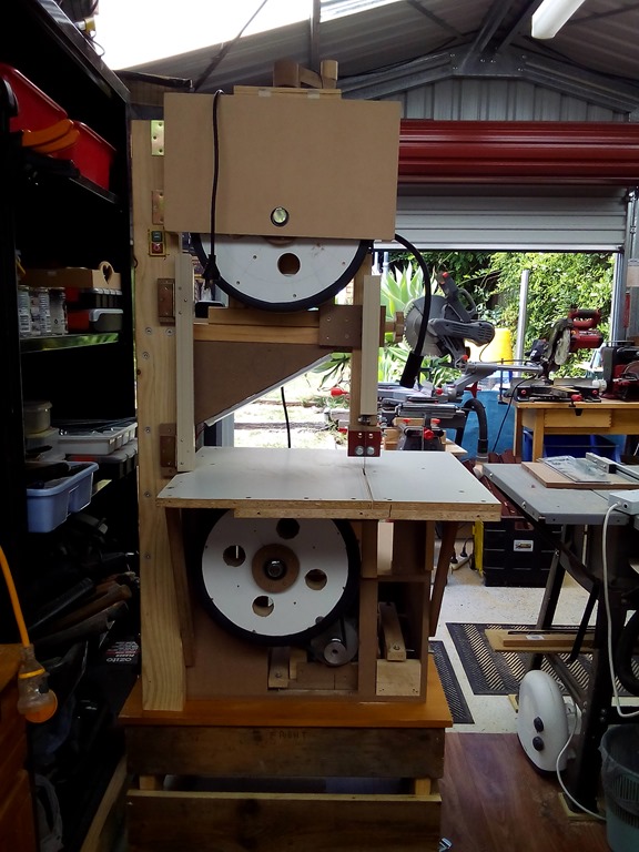 That looks better. As I said the saw is heavy but was easy to slide over onto the stand. When I clean up I’ll return the low table to the downstairs rumpus room. Who knows…might go looking for it again in a few years to build – another bandsaw.