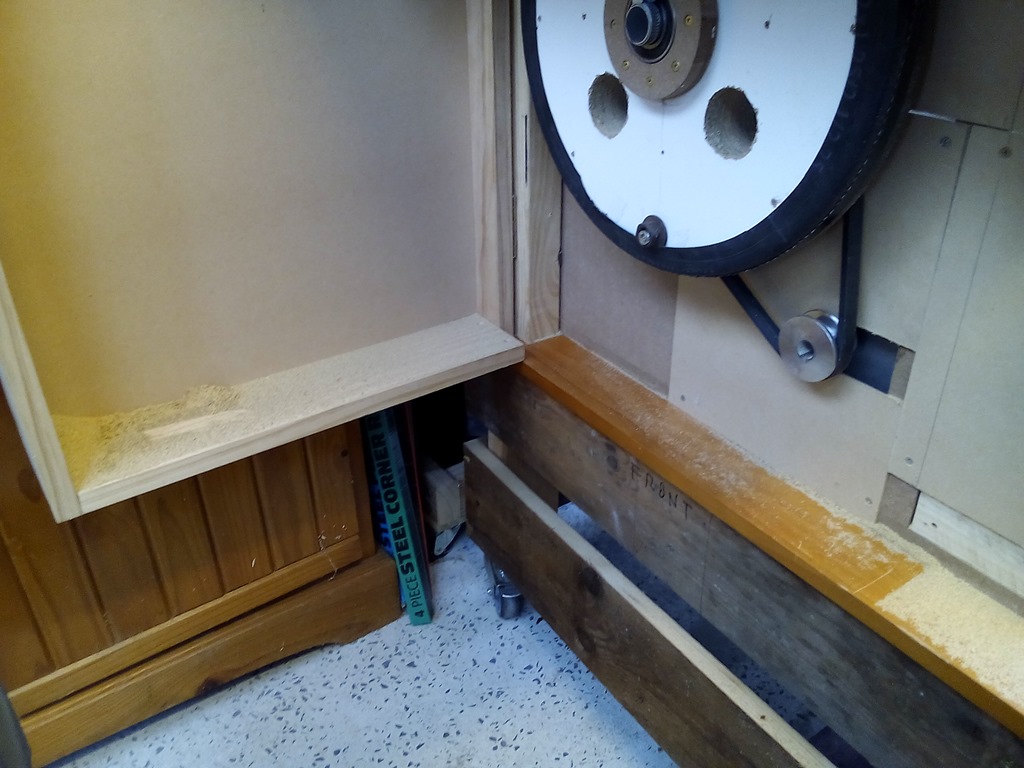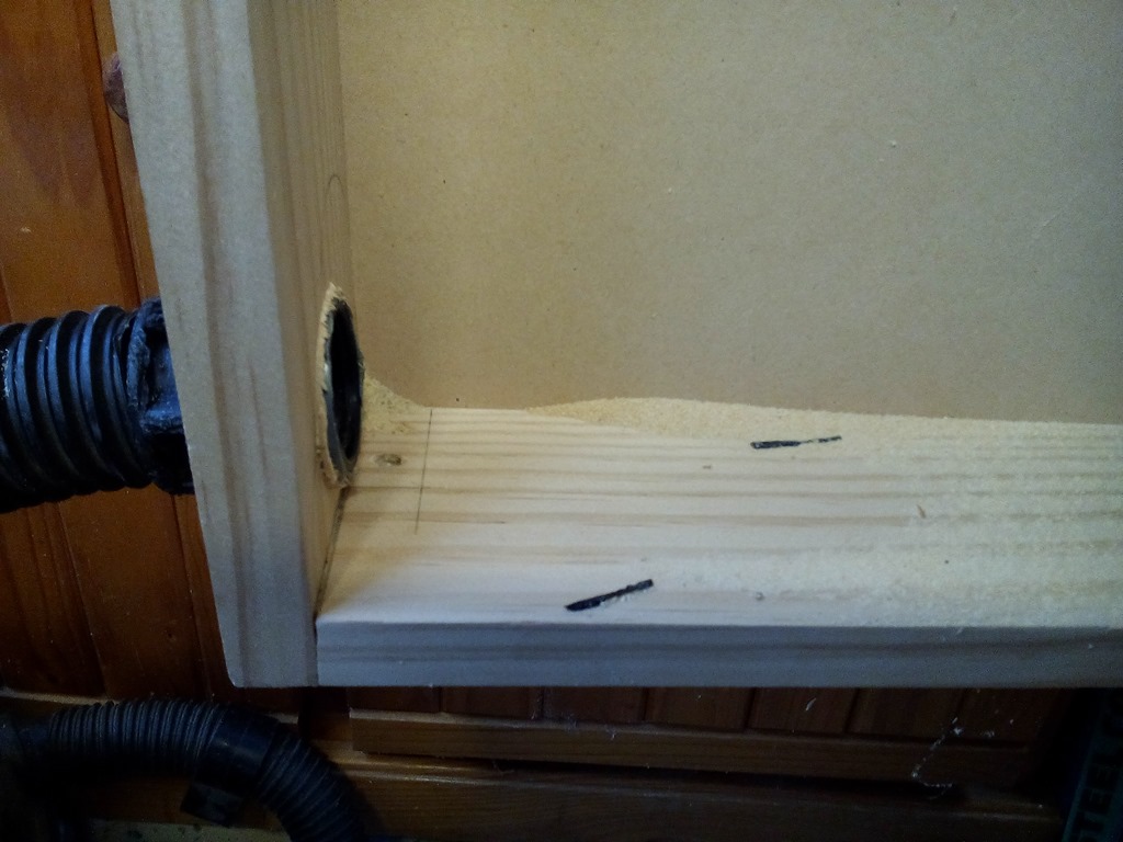 Almost all the dust has collected in that left corner of the open cover. That makes sense as the wheel turns clockwise blowing everything into that corner. That’s good !, we can mount the dust port low down in the corner.