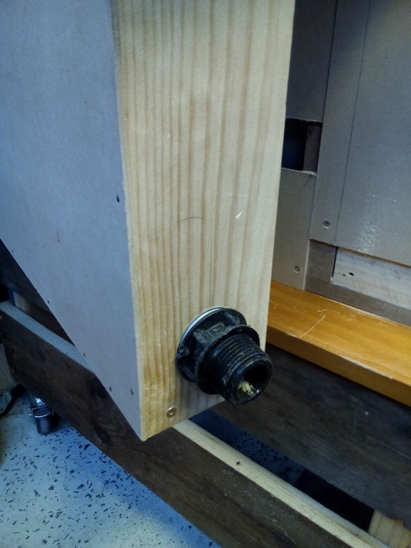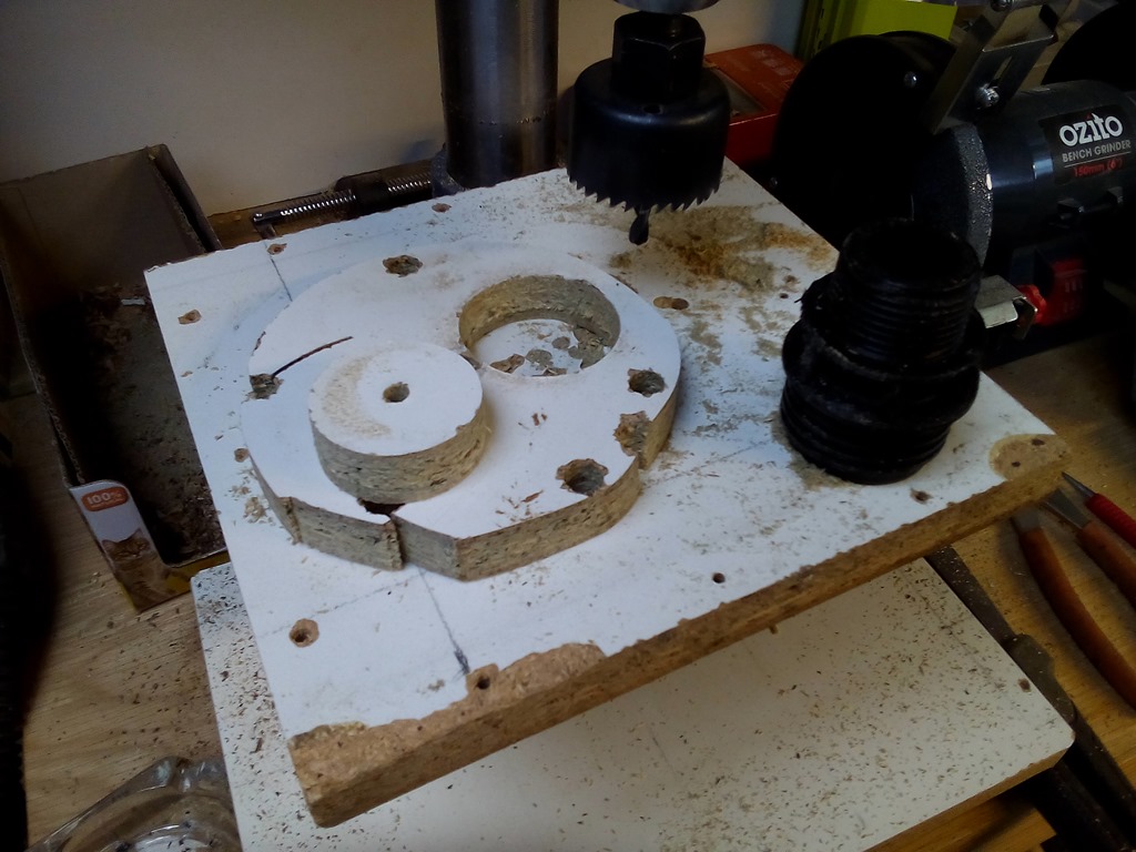 As always bored a test hole in a bit of scrap. Done on the drill press it was a nice squeeze fit but…drilling the hole ‘freehand’ into the side of the cover resulted in a slightly oversize hole.