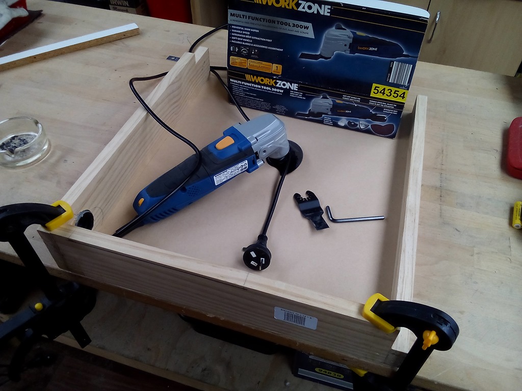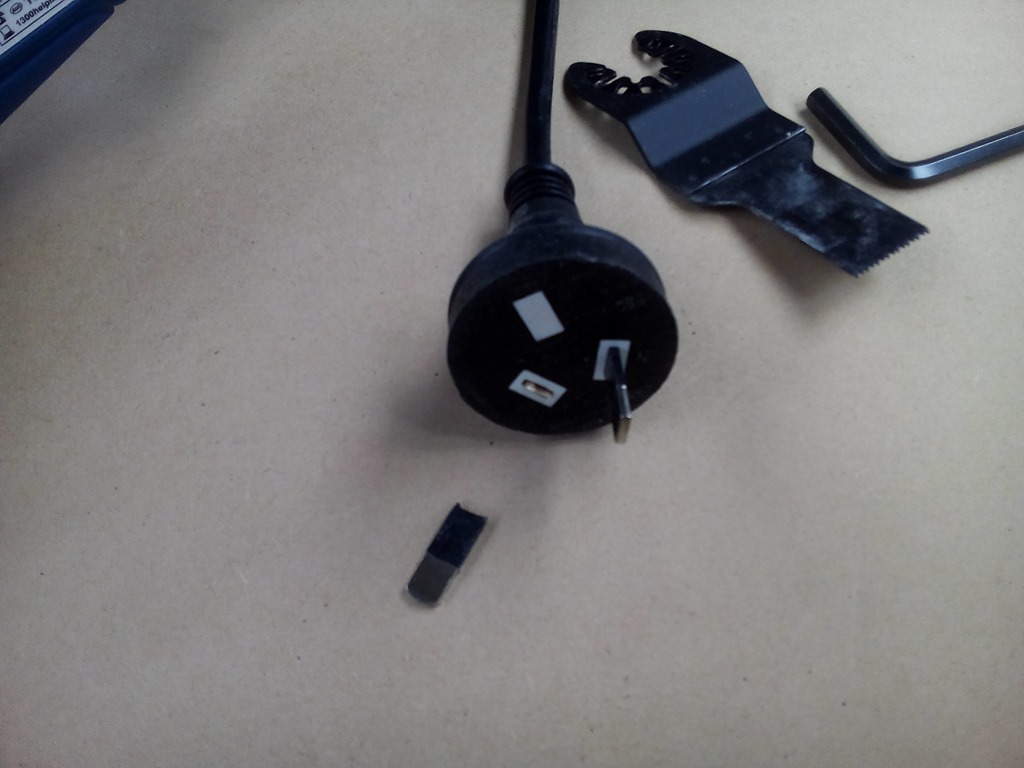 Removed the cover and transferred the cut out measurements to the cover. Then got out the multifunction tool and went to plug it in, one pin was a bit bent.