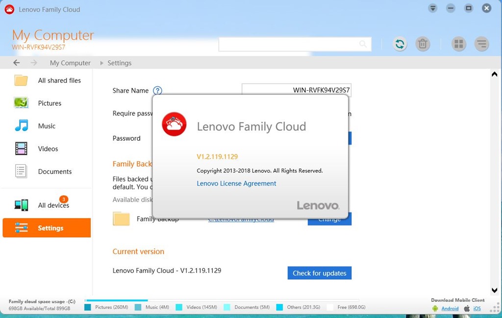 Lenovo Family Cloud Server (Server – Win10/64bit PC)