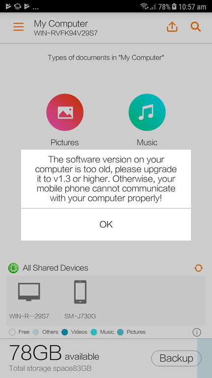 Next off to Play store to get the Android client. Two on offer with one marked NEW, so installed that on my Samsung J7 Pro – with no issues. Opened the app and was greeted with this message: