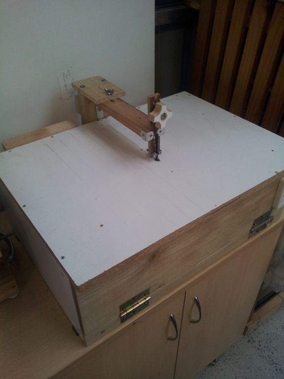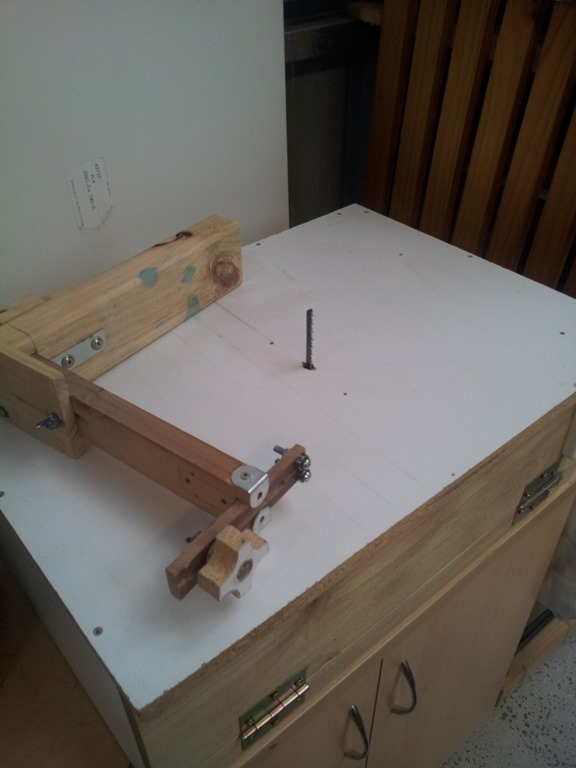 I’ll need more room to swing the board around so removed the blade arm by simply loosening the lock knob at the back.
